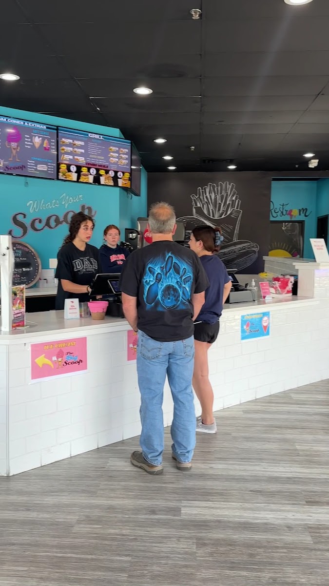 Love this new ice cream shop! Huge huge selection of flavors. The two girls worked there were so friendly and helpful. I only got Pam’s name. Even though they have limited type of food, but we decided to grab a bite before having ice cream. We ordered Smashed Burgers, double cheeseburgers, croissant, chicken sandwich Hot Dog, side of Mac & Cheese Bites, and Sweet potato waffle fries. Everything was delicious. Good portion and cost for the ice creams. You can also make milkshake with any flavor of ice creams. My husband loved the Dark Chocolate Raspberry, I prefer the Deep Dish Apple Pie, my mom had Blueberry Cheesecake, and my daughter had cappuccino Crunch made into milkshake. I cannot wait to go back for some Italian Ice on a hot summer day.